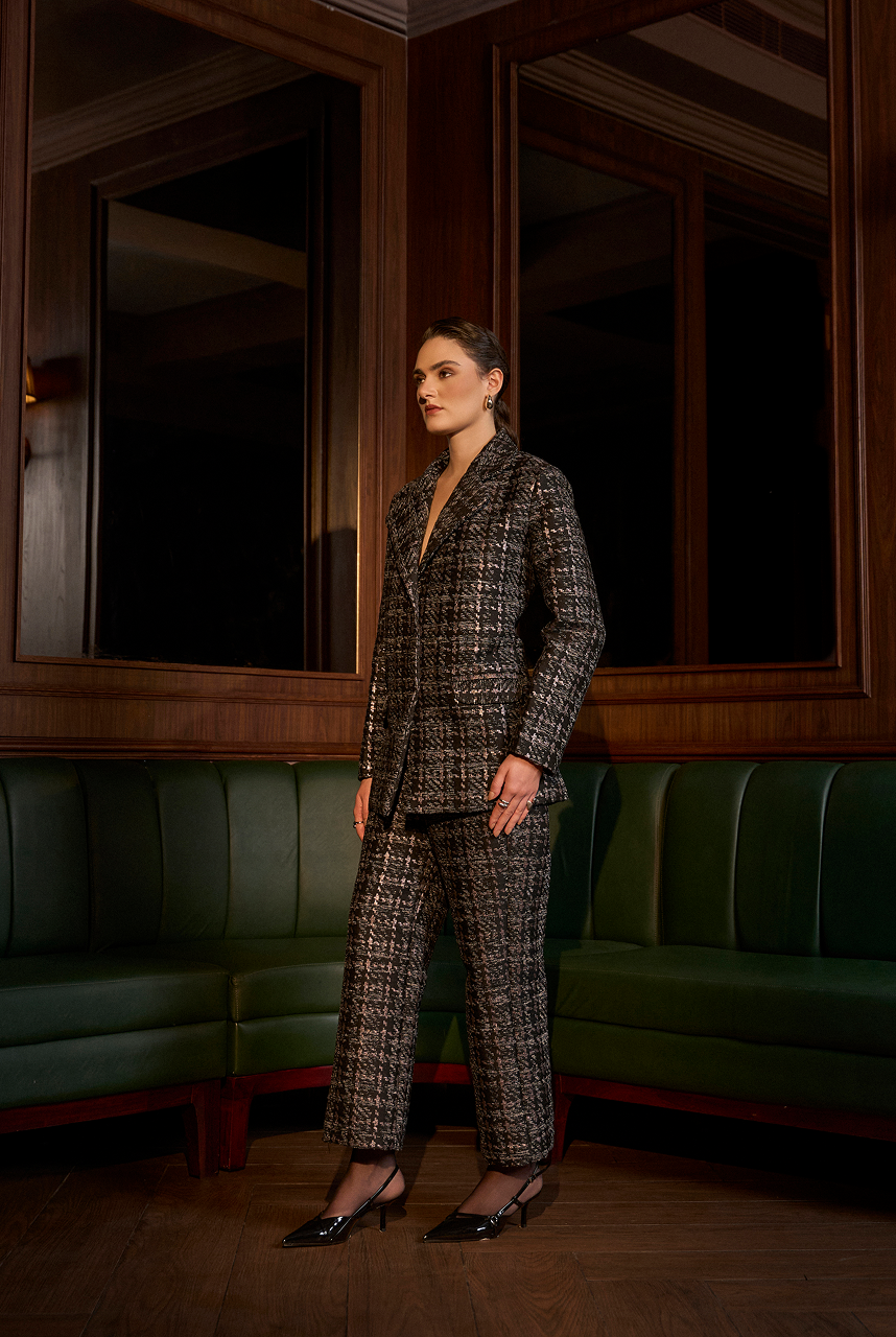 Textured metallic weave pant suit